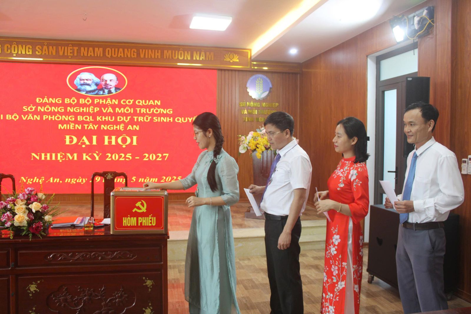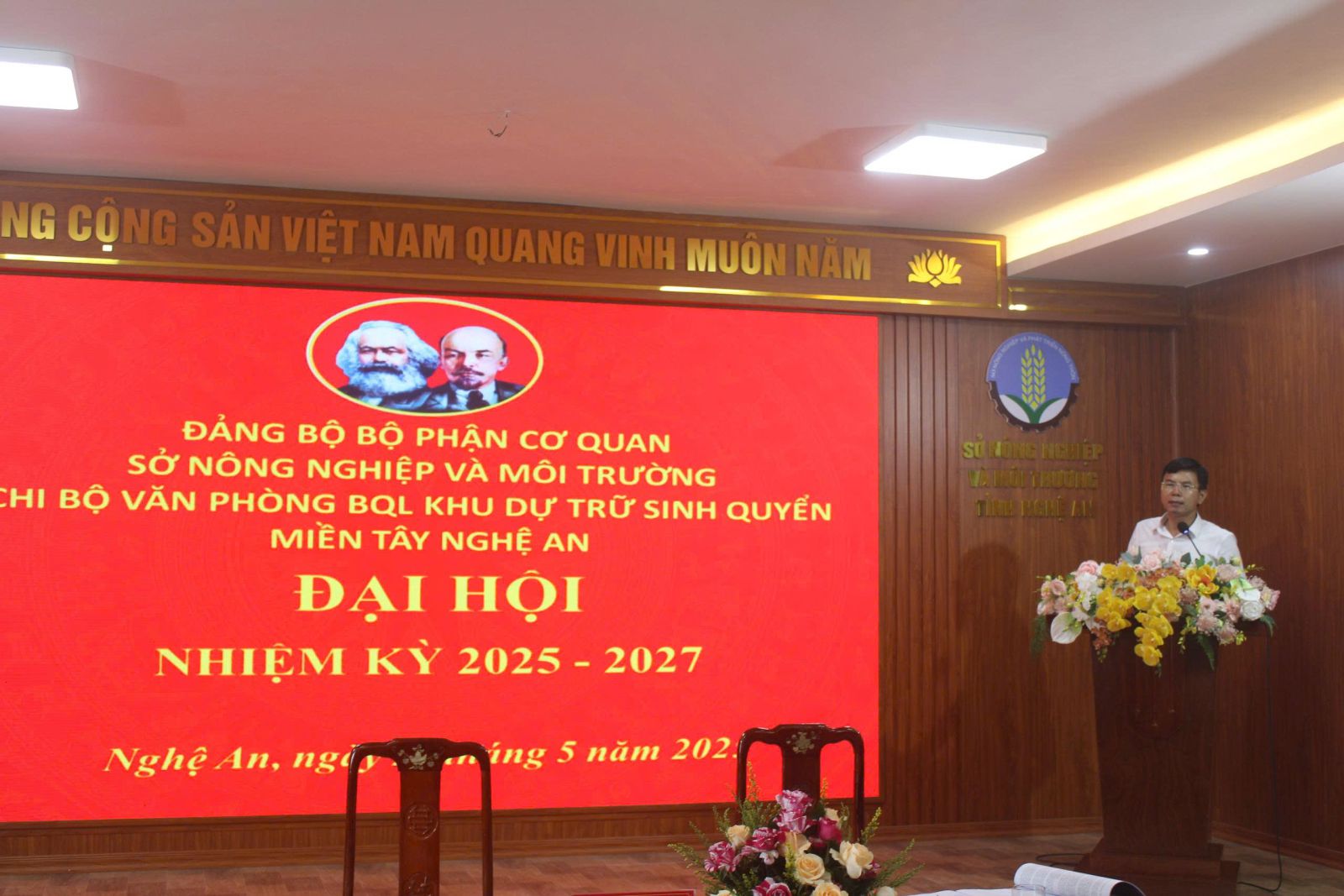 Tham dự đại hội có Đồng chí Nguyễn Danh Hùng - Phó Giám đốc Sở Nông nghiệp và Môi trường; Đồng chí Nguyễn Quốc Sơn - Trưởng phòng Tổ chức cán bộ; Đồng chí Nguyễn Mạnh Toàn - Trưởng phòng Đo đạc, Bản đồ và Viễn thám và các Đảng viên chi bộ Văn phòng Ban quản lý Khu Dự trữ sinh quyển miền Tây Nghệ An.