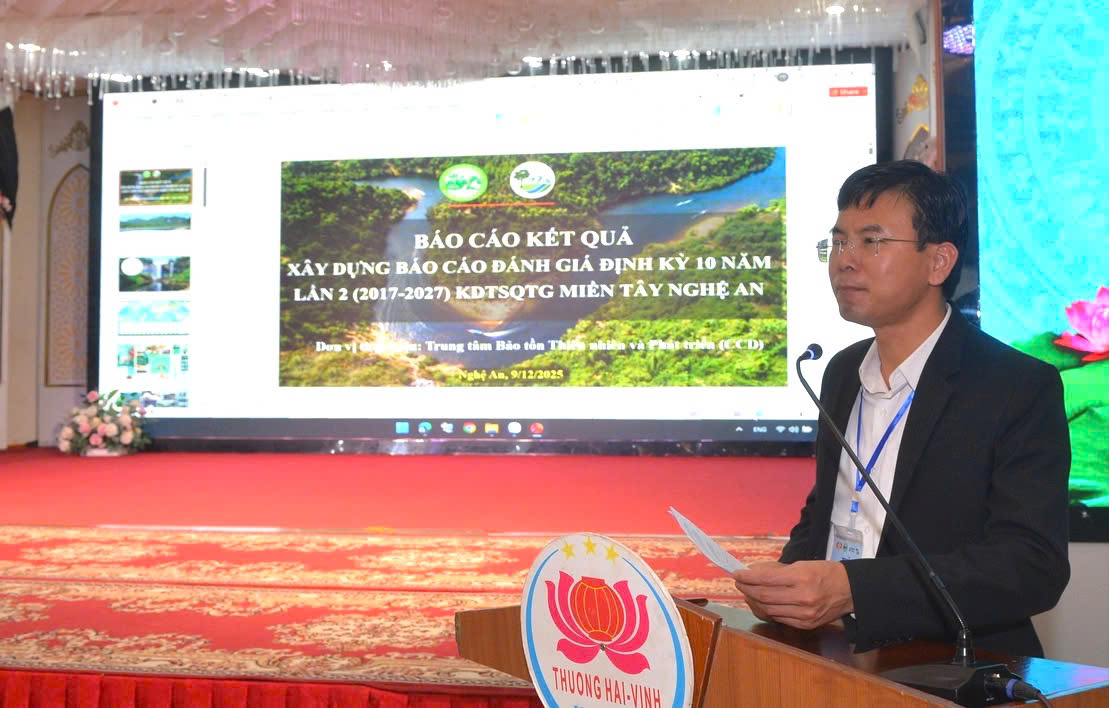Ngày 9/12, Ban Quản lý Khu Dự trữ sinh quyển (KDTSQ) miền Tây Nghệ An tổ chức Hội thảo đánh giá định kỳ 10 năm lần thứ 2 và xây dựng kế hoạch hoạt động giai đoạn 2027–2037.