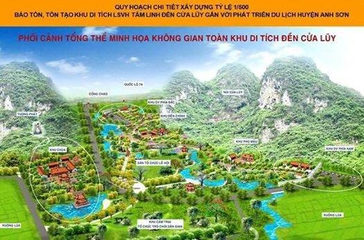 Trải qua thời gian, chiến tranh và thiên tai khiến di tích nhiều lần bị tàn phá. Trong những năm gần đây, đền được trùng tu và tôn tạo, đồng thời mở rộng thành một quần thể văn hóa – tâm linh quy mô lớn. Năm 2018, khu di tích được quy hoạch chi tiết tỉ lệ 1/500 với tổng diện tích khoảng 15 ha, bao gồm khu đền, khu phủ thờ Tam Tòa Thánh Mẫu – tứ phủ công đồng, khu chùa (trong đó có Chùa Anh Sơn khởi công năm 2019), khu dịch vụ, sân lễ hội, bãi đỗ xe, không gian cây xanh và khu trồng cây thuốc nam. Trước khi mở rộng, phần đền cổ rộng hơn 3.100 m² với các hạng mục như cổng tam quan, nhà Hạ điện, Trung điện, Thượng điện và tam bảo.