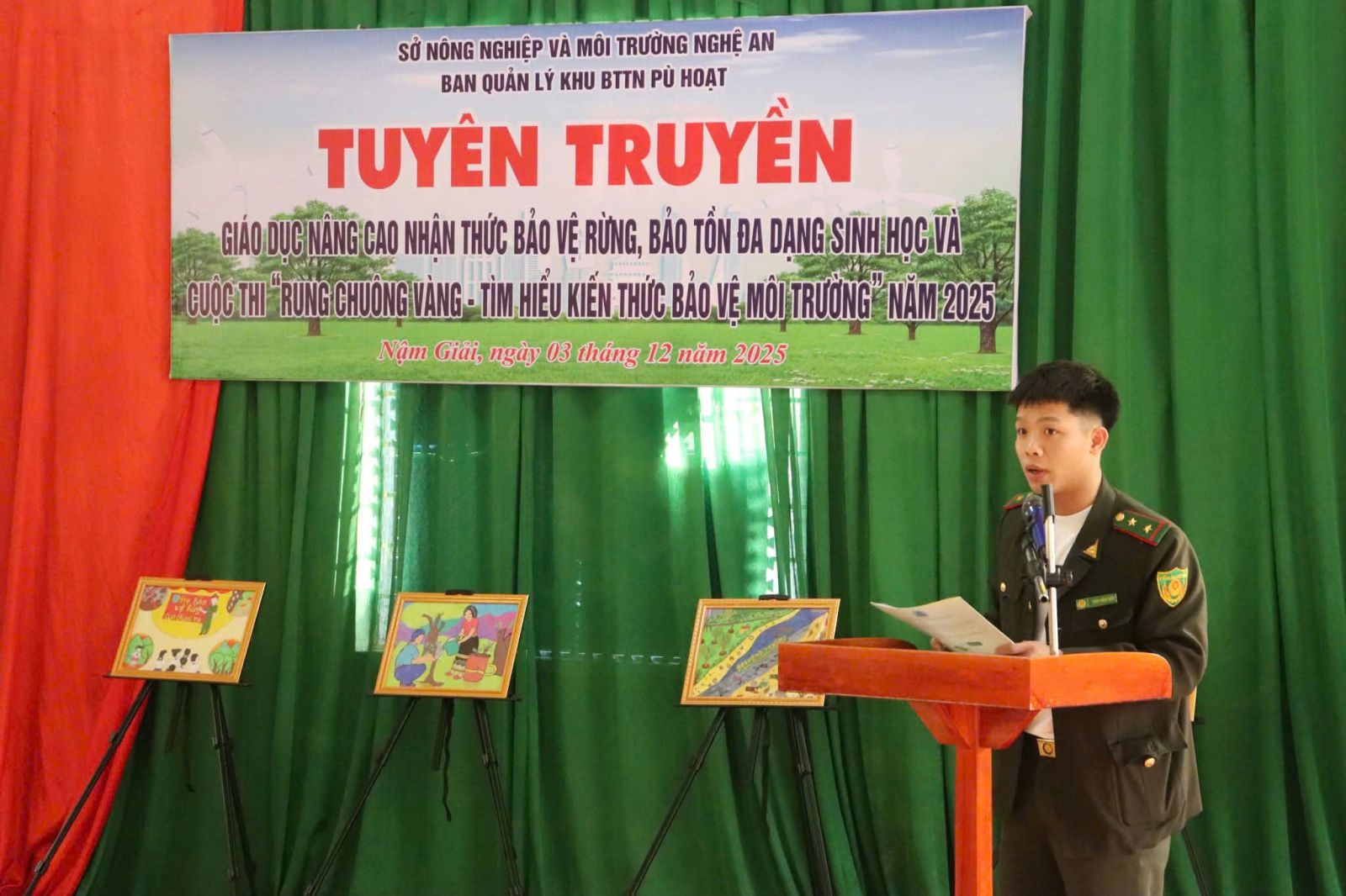 Nhằm nâng cao nhận thức và trách nhiệm của thế hệ trẻ trong công tác bảo vệ rừng và bảo tồn đa dạng sinh học, vừa qua Ban Quản lý Khu Bảo tồn Thiên nhiên Pù Hoạt đã triển khai chuỗi hoạt động truyền thông – giáo dục môi trường tại 05 trường Tiểu học và THCS trên địa bàn vùng đệm. Với cách làm đổi mới, sáng tạo, chương trình đã chuyển tải những kiến thức về giá trị của rừng, tài nguyên thiên nhiên và bảo vệ động vật hoang dã đến học sinh một cách sinh động, gần gũi và dễ tiếp thu. Không đơn thuần là những buổi tuyên truyền lý thuyết, các hoạt động được tổ chức dưới hình thức sân chơi học tập bổ ích, lành mạnh, lồng ghép giao lưu, hỏi – đáp, trò chơi tương tác và các cuộc thi tìm hiểu kiến thức môi trường. Qua đó, tình yêu thiên nhiên được khơi dậy, niềm tự hào và ý thức trách nhiệm của mỗi học sinh đối với rừng và môi trường sống được nuôi dưỡng ngay từ khi còn ngồi trên ghế nhà trường. Thông qua nội dung tuyên truyền và các cuộc thi, nhiều em học sinh đã hiểu rõ hơn vai trò của rừng đối với đời sống, nhận thức sâu sắc về ý nghĩa của việc bảo vệ động vật hoang dã cũng như tác hại của các hành vi xâm hại tài nguyên thiên nhiên. Quan trọng hơn, chương trình đã tạo ra chuyển biến tích cực trong nhận thức và hành vi, định hướng cho các em những việc làm cụ thể, thiết thực như: không săn bắt động vật hoang dã, không chặt phá rừng, tích cực tuyên truyền cho gia đình và cộng đồng cùng chung tay bảo vệ thiên nhiên. Truyền thông giáo dục môi trường trong trường học chính là nền tảng bền vững để hình thành một thế hệ trẻ nhận thức đúng – hành động đúng, góp phần bảo vệ rừng, gìn giữ đa dạng sinh học, để rừng Pù Hoạt không chỉ được bảo vệ hôm nay mà còn được lưu giữ trọn vẹn cho các thế hệ mai sau.
